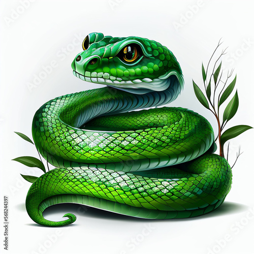 © raquel, Fototapeta premium Cartoon of a green snake on white background