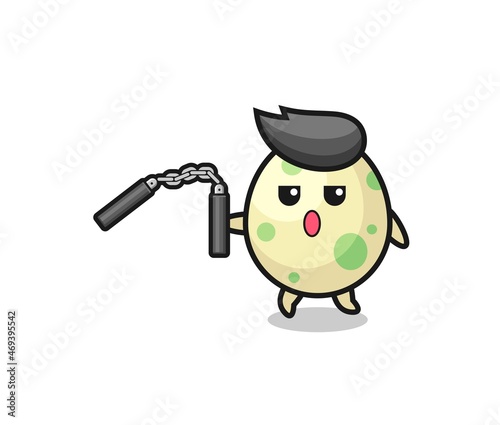 Fototapeta premium cartoon of spotted egg using nunchaku