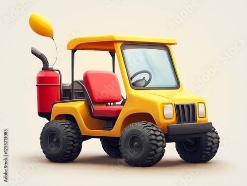 © Raffaza, Fototapeta premium Cartoon Off-Road Vehicle with Balloon and Fuel Tank