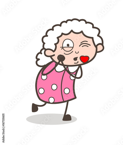 Obraz premium Cartoon Old Granny Giving a Flying Kiss Vector Illustration
