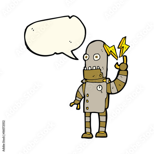 © lineartestpilot, Obraz premium cartoon old robot with speech bubble