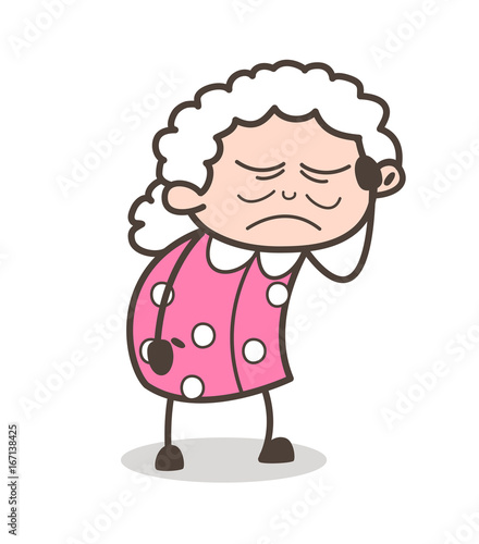 Fototapeta premium Cartoon Old Sick Lady Expression Vector Illustration