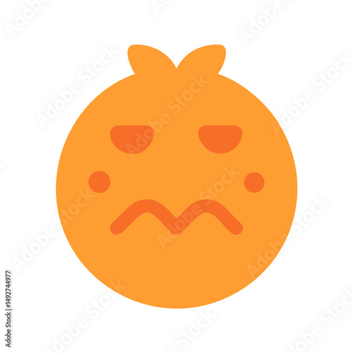 © Sharuzzaman, Obraz premium Cartoon Orange Emoji with Disappointed Expression on Black Background