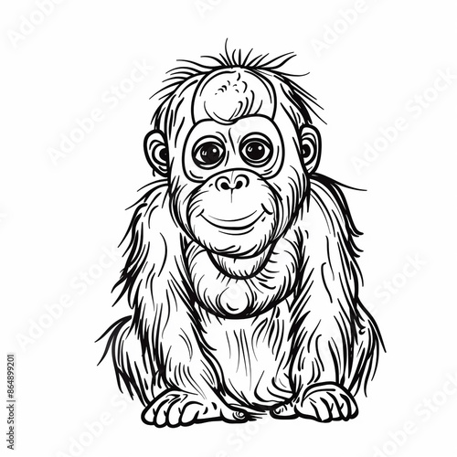 © Ammar, Fototapeta premium Cartoon orangutan, outlined for coloring, on a white background.