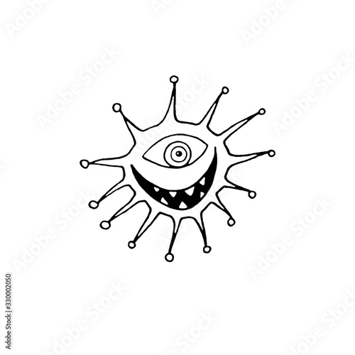 Fototapeta premium Cartoon outline virus character illustration on white background. Isolated character, icon, monster, microbe, pathogen