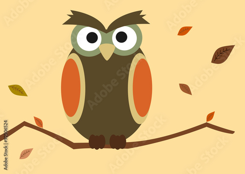 © Alice Vacca, Fototapeta premium cartoon owl on branch with autumn leaf vector background illustration