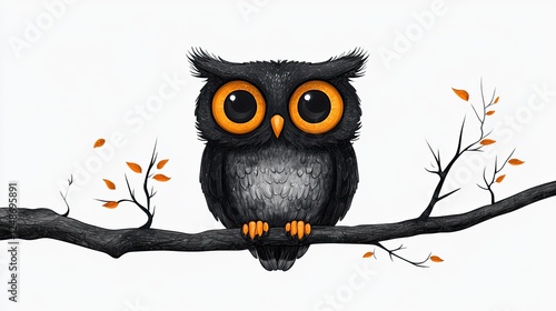© Aluna, Naklejka premium Cartoon owl perched on a branch with autumn leaves, set against a light background
