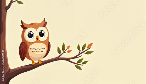 Fototapeta premium Cartoon owl sitting on a branch against a light background