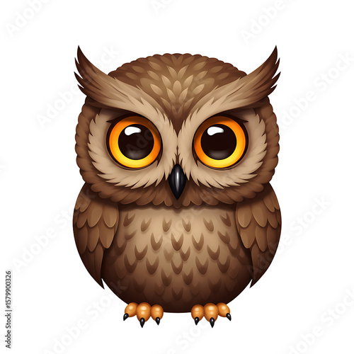© Sri, Fototapeta premium Cartoon Owl With Big Orange Eyes Standing on White Background
