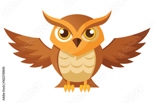 © Murshida, Fototapeta premium Cartoon Owl with Open Wings, Brown Feathers, Large Eyes, and Yellow Beak