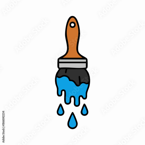 Obraz premium Cartoon Paintbrush Dripping Blue Paint Illustration Icon