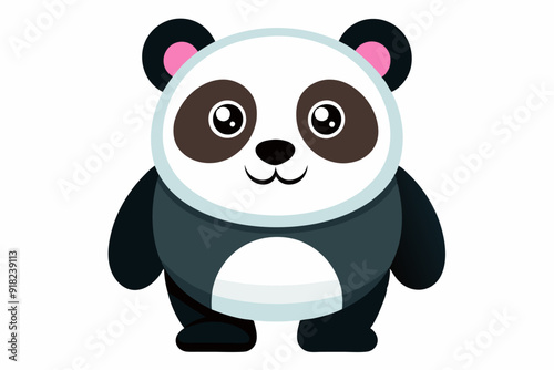 Naklejka premium Cartoon Panda with Pink Ears and Big Eyes