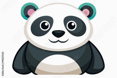 Fototapeta premium Cartoon Panda with Teal Ears and Pink Inside