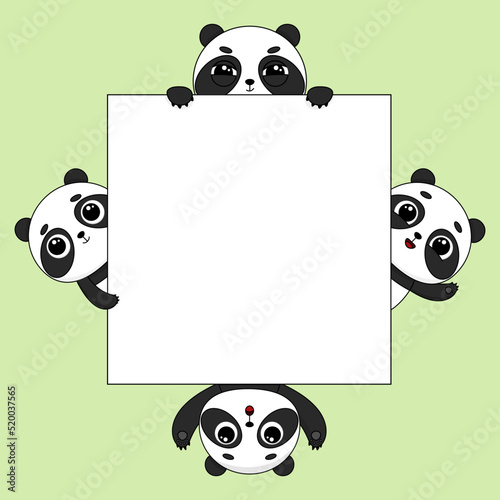 Fototapeta premium Cartoon pandas with blank sign. Place for text. Vector illustration