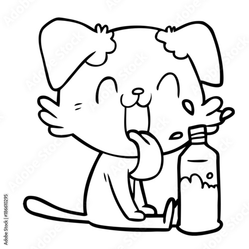 © lineartestpilot, Obraz premium cartoon panting dog with water