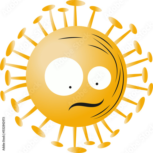 © vectorfusionart, Fototapeta premium Cartoon pathogen sphere showing gradient rods and caps with uneasy face on transparent background
