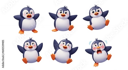 © AGUS, Fototapeta premium Cartoon penguin characters with various emotions