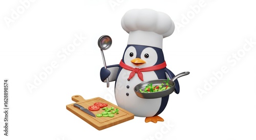 © Anik, Obraz premium Cartoon penguin chef preparing food