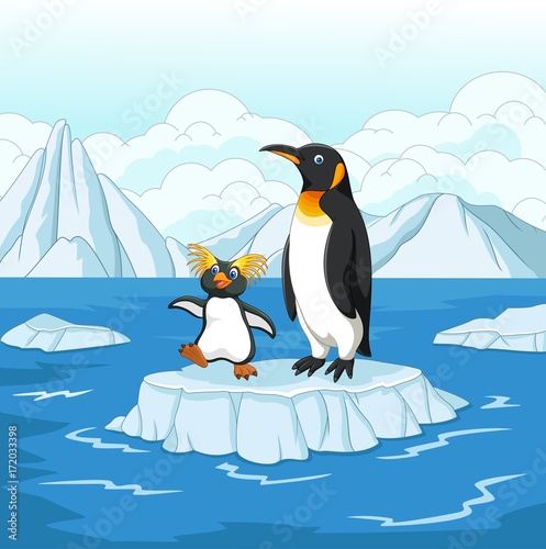 Obraz premium cartoon penguin playing on ice floe