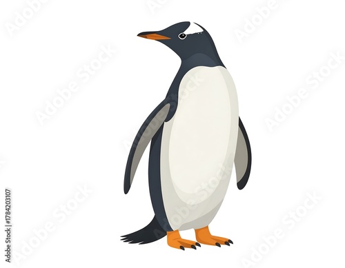 © uyun, Naklejka premium Cartoon penguin standing upright with orange feet and beak on a white background