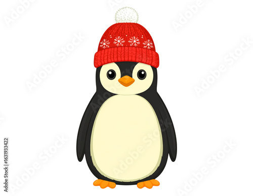 © MDShakhawat, Obraz premium Cartoon Penguin Wearing Red Winter Hat, Standing Front View, Transparent Background