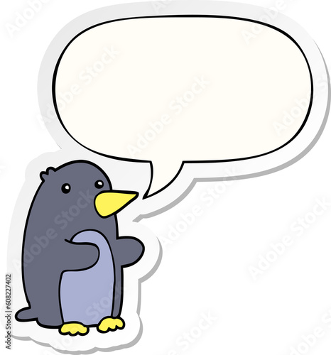 © lineartestpilot, Obraz premium cartoon penguin with speech bubble sticker