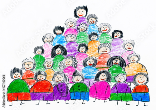 © soleg, Fototapeta premium cartoon people team collection group portrait, children drawing object on paper, hand drawn art picture