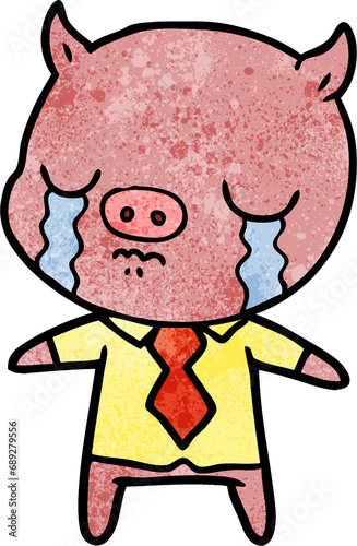 © lineartestpilot, Obraz premium cartoon pig crying wearing shirt and tie