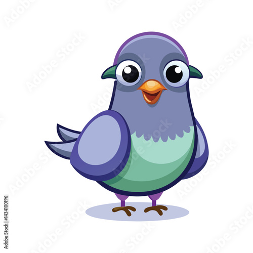 Fototapeta premium Cartoon pigeon with a calm expression and lovely feathers vector illustration...