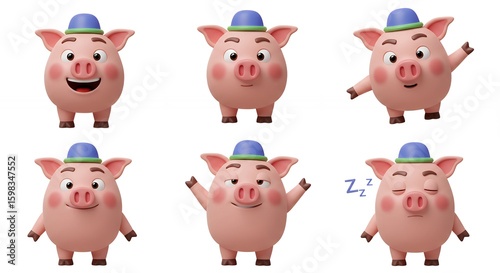Obraz premium Cartoon pigs set various expressions