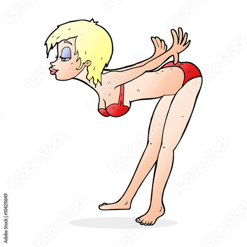© lineartestpilot, Naklejka premium cartoon pin up girl in bikini