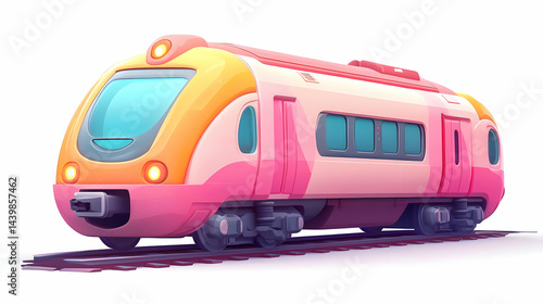 © Weka, Naklejka premium Cartoon Pink and Yellow Pixel Art Train on Railroad Tracks Against White Background