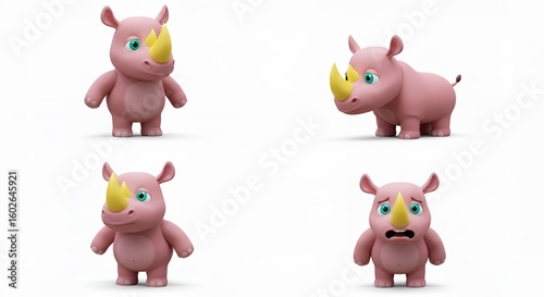 Naklejka premium Cartoon pink rhinoceros figures
