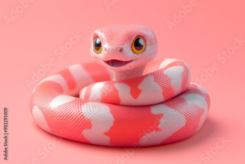 © o1559kip, Fototapeta premium Cartoon pink snake on a pink background