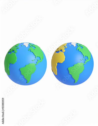 © Adobe worker , Naklejka premium Cartoon planet Earth on white background. 3d realistic globe icon. Planet Earth day or Environment day concept.cartography, global, land, map, science, social media, sphere, topography, world map,
