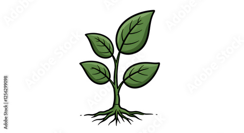 Fototapeta premium Cartoon Plant Seedling Growing with Green Leaves and Visible Roots. Generative AI