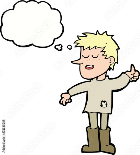 Fototapeta premium cartoon poor boy with positive attitude with thought bubble