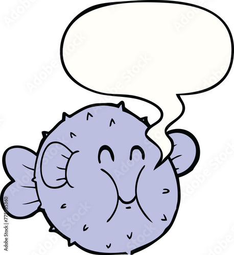 © lineartestpilot, Obraz premium cartoon puffer fish with speech bubble