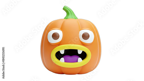Fototapeta premium Cartoon Pumpkin with Open Mouth on White Background