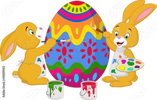 © tigatelu, Obraz premium Cartoon rabbit painting an Easter egg