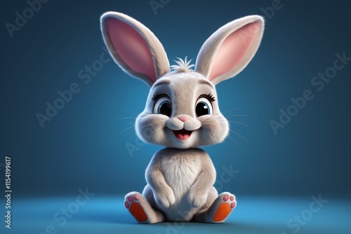Naklejka premium cartoon rabbit sitting on the ground with a blue background