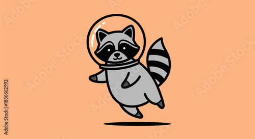 © Leomord, Fototapeta premium Cartoon raccoon astronaut on orange background