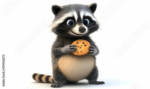 © Get it, Fototapeta premium Cartoon raccoon holding cookie