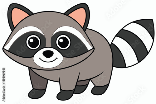 Fototapeta premium Cartoon Raccoon Illustration with Striped Tail, Black Eyes, and Smiling Face...