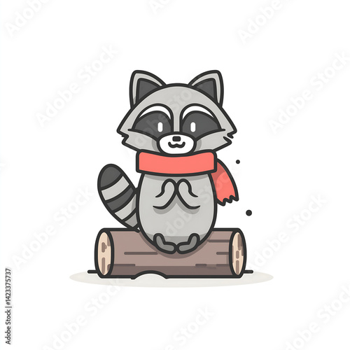 © Катерина Спіжевска, Obraz premium cartoon raccoon wearing a small red scarf