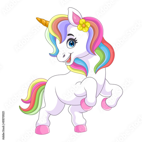 © REYYARTS, Naklejka premium Cartoon rainbow horse isolated on white background