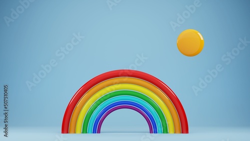 © chalyshevae, Obraz premium cartoon rainbow with sun, 3d render