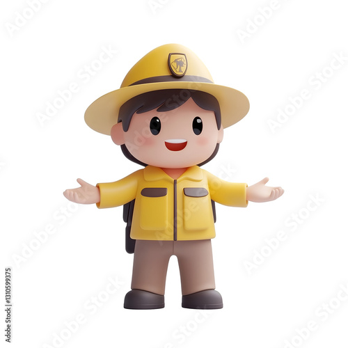 © Aa, Fototapeta premium Cartoon Ranger Standing with Open Arms Isolated on Transparent or White Background, Public Services and Community Workers Concept