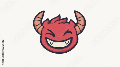 © Puttipong, Obraz premium Cartoon Red Demon with Horns and a Cheerful Expression