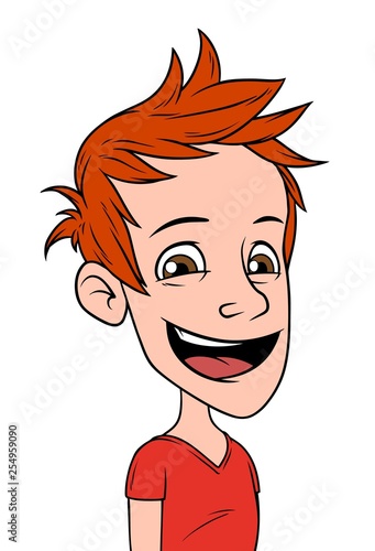 Obraz premium Cartoon redhead happy smiling boy character. Isolated on white background....